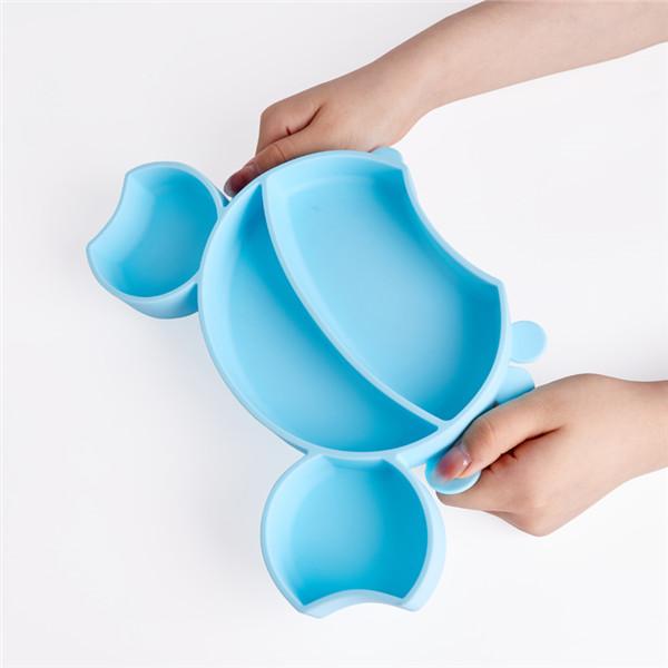 硅膠兒童餐盤主要選用環保食品級硅膠材料定制而成,在定制加工過程中選用食品級鉑金硫化劑高溫固化成型,安全環保,柔軟舒適,可長期用于高溫以及低溫冰凍,溫度區間在-40°-260°之間可正常使用,防摔耐磨,柔軟舒適,可以任意曲折,適用于兒童自主進食